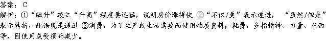 A.升高 虽然/但是 消费 B.飙升 虽然/但是 耗费
