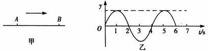 点由平衡位置开始振动,产生向右沿直线传播的简谐波.图乙为从t=0