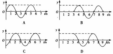 (08重庆联合第一次诊断)一列简谐横波以1 m/s的速度沿绳子由A向B传播,质点A、B间的水平距离x =3 m,如图甲所示,若t = 0时质点A刚从平衡位置开始向上振动,其振动图象如图乙所示,则B点的振动图象为下图中的
