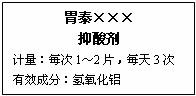 例4:(2005年·广东汕头)胃酸的主要成分是盐酸,胃酸过多会引起胃痛。下图是一种治疗胃病药物的标签。