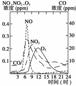 (2009·山东济南模拟)读“某日洛杉矶几种污染物浓度日变化图”,根据“光化学烟雾”的相关知识,回答11-13题。