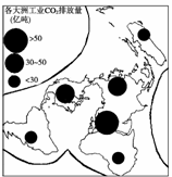 14.图中显示,工业CO2排放量大于50亿吨的大洲主要是 ( )