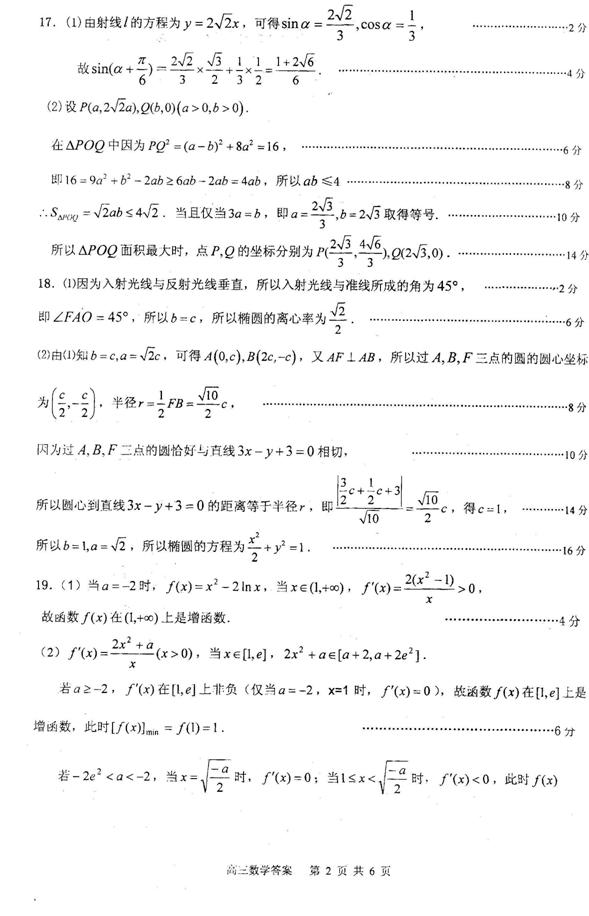 (2)设入射光线与右准线的交点为B,过A,B,F三点的圆恰好与直线3x一y+3=0相切,求椭圆的方程.