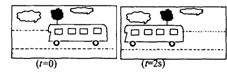 [例6]公共汽车在平直的公路上行驶时,固定于路旁的照相机每隔两秒连续两次对其拍照,得到清晰照片,如图所示.分析照片得到如下结果:(1)在两张照片中,悬挂在公共汽车顶棚上的拉手均向后倾斜且程度相同;(2)对间隔2s所拍的照片进行比较,可知汽车在2s内前进了12 m.