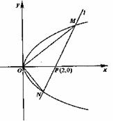 如图,O为坐标原点,过点P(2,0)且斜率为k的直线l交抛物线y2=2x于M(x1,y1),N(x2, y2)两点.