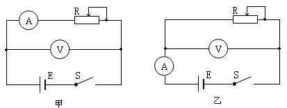 例2 用一只电流表和一只电压表测电池电动势和内电阻的实验电路有如图所示的甲、乙两种,采用甲图测定E和r时产生的系统误差主要是由于     ;采用乙图测定E和r时产生的系统误差主要是由于     ,为了减小上述系统误差,当R远小于RV时,应采用     电路。