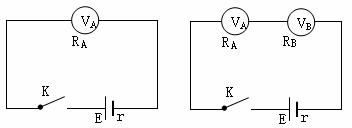 设电压表的内阻为RARB,电池的电动势为E,内阻为r.