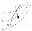 [应用2](镇江市08调查)如图所示,虚线 a 、 b 、 c 代表电场中的三个等势面,相邻等势面之间的电势差相等,即Uab=Ubc,实线为一带正电的质点仅在电场力作用下通过该区域时的运动轨迹, P 、 Q 是这条轨迹上的两点,据此可知 ( )