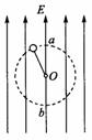 (07青岛模拟)如图所示,在竖直向上的匀强电场中,-根不可伸长的绝缘细绳-端系着一个带电小球,另一端固定于O点,小球在竖直平面内做匀速圆周运动,最高点为a,最低点为b。不计空气阻力,则( )