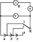 10.(8分)在如图所示的电路中,A、B、C为三节干电池,实验中理想电压表和理想电流表的读数如下表所示.