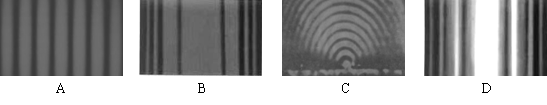 (1)在光的单缝衍射实验中可观察到清晰的亮暗相间的图样,下列四幅图片中属于光的单缝衍射图样的是▲