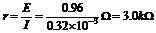 (2)晓宇同学用欧姆表直接测“土豆电池”的两极,读得此时的读数为30Ω.小丽同学用灵敏电流表直接接“土豆电池”的两极,测得电流为0.32mA,根据前面用伏特表测得的0.96V电压,由全电路欧姆定律得: