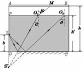 m处有一点光源S,在其正上方放有一长等于水池宽度的标尺AB,S上方有小挡板,使光源发出的光不能直接射到液面,不考虑光在水池面上的反射,求在此横截面上标尺上被照亮的长度和