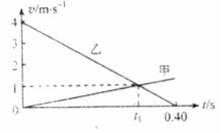 15. 两物体甲和乙在同一直线上运动,它们在0-0.4s时间内的v-t图象如图所示。若仅在两物体之间存在相互作用,则物体甲与乙的质量之比和图中时间t1分别为