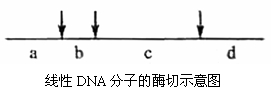 (08理综Ⅰ)已知某种限制性内切酶在一线性DNA分子上有3个酶切位点,如图中箭头所指,如果该线性DNA分子在3个酶切位点上都被该酶切断,则会产生a、b、c、d四种不同长度的DNA片段。现在多个上述线性DNA分子,若在每个DNA分子上至少有1个酶切位点被该酶切断,则从理论上讲,经该酶切后,这些线性DNA分子最多能产生长度不同的DNA片段种类数是