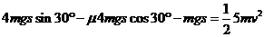 ( 13 分)如图所示,一固定的契形木块,其斜面的倾角θ=30°,另一边与地面垂直,顶上有一定滑轮,一柔软的细绳跨过定滑轮,两端分别与物块A和B连接。A的质量为4kg,B的质量为1kg。开始时将B按在地面上不动,然后放开手,让A沿斜面下滑而B上升。物块A与斜面间动摩擦因数为