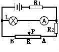 (14分)如图所示电路,电源内阻r=1Ω,R1=2Ω,R2=5Ω,灯L标有“3V,1.5W”,滑线变阻器最大值为R,当滑片P滑到最右端A时,电流表读数为1A,此时灯L恰好正常发光,试求