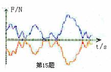 (3分)用DIS做验证牛顿第三定律的实验,点击实验菜单中“力的相互作用”。把两个力探头的挂钩钩在一起,向相反方向拉动,观察显示器屏幕上出现的结果如图。观察分析两个力传感器的相互作用力随时间变化的曲线,可以得到以下实验结论: