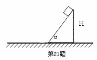 21.(10分)如图所示,固定在水平面上的光滑斜面,倾角α=530,高为H,质量为m的小物体,开始时它在斜面顶端。(sin530=0.8 ,cos530=0.6)