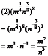 分析:(1)题可以仿照单项式乘除法进行,首先是系数相乘除,然后是同底数幂相乘除,并且要注意符号。(2)题先按积的乘方计算,后按幂的乘方计算,等熟练后可简化计算步骤。对于计算的结果不强求统一用什么形式来表示,没有特别要求,就用分数指数幂的形式表示。如果有特殊要求,可根据要求给出结果,但: