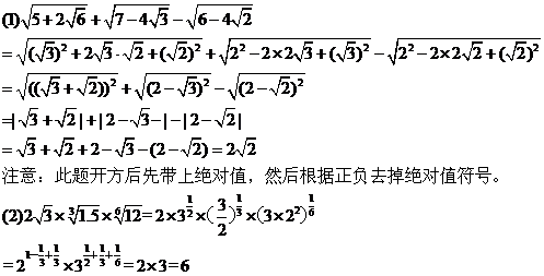 分析:(1)题需把各项被开方数变为完全平方形式,然后再利用根式运算性质;