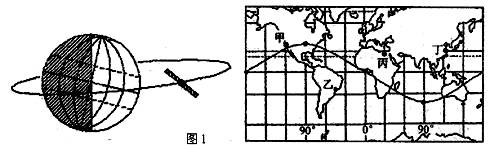 圈后,右图中最靠近晨线的城市是 A.甲 B.乙 C.丙 D.丁