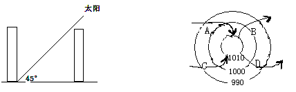 5.北半球某城市,冬至日时正午太阳高度为45°(如上图2),为保证建筑物底层居室常年有
