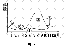 右图5为“我国东北地区某河流流量补给示意图”, 图中数码表示的河流补给类型正确的是