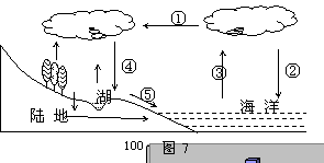 读图7 “水循环示意图”,完成12-13题。