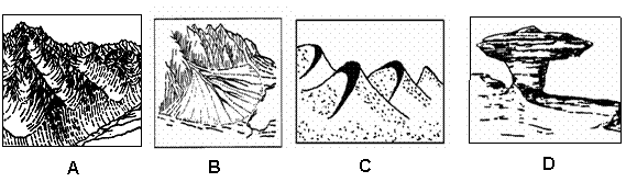 在图8中 D地旅游,最常见的地貌景观是
