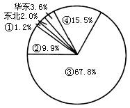 下图表示我国可开发水能资源的地区(按东北、华北、华东、中南、西南、西北划分)分布。参考图回答4-5题。