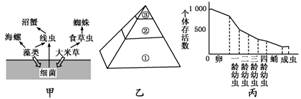 (3)有人研究该生态系统中食草虫个体存活数与发育期的关系,如果如丙图。从中可推知食草虫死亡率最大的时期是 。