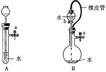 ⑵关闭图B装置中弹簧夹a后,开启分液漏斗的活塞b,水不断往下滴,直至全部流入烧瓶。试判断:B装置是否漏气?(填“漏气”、“不漏气”或“无法确定”) 。
