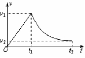 3. 在军事演习中,某空降兵从飞机上跳下,先做自由落体运动,在t1时刻,速度达最大值v1时打开降落伞,做减速运动,在t2时刻以较小速度v2着地。他的速度图象如图所示。下列关于该空降兵在0-t1或t1-t2时间内的的平均速度
