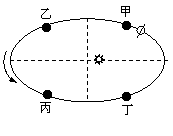 13、地球从甲处经乙、丙、丁回到甲公转一周(甲、乙、丙、丁之间等距)四段之间用时最少的是( )
