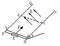 15.(16分)如图所示,MN、PQ是足够长的光滑平行导轨,其间距为L,且MP⊥MN.导轨平面与水平面间的夹角θ=300.MP接有电阻R.有一匀强磁场垂直于导轨平面,磁感应强度为B0.将一根质量为m的金属棒ab紧靠PM放在导轨上,且与导轨接触良好,金属棒的电阻也为R,其余电阻均不计.现用与导轨平行的恒力F=mg沿导轨平面向上拉金属棒,使金属棒从静止开始沿导轨向上运动,金属棒运动过程中始终与MP平行.当金属棒滑行至cd处时已经达到稳定速度,cd 到MP的距离为S.求: