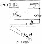 3.如图所示是一个简单的磁控防盗报警装置,门的上沿嵌入一小块永磁体M,门框内与M相对的位置嵌入干簧管H,并将干簧管接入图示的电路中。白天光敏电阻RG比电阻R小得多,夜间光敏电阻RG比电阻R大得多.现要求只在夜间开门时,蜂鸣器才会叫.为使防盗报警装置能正常工作,在虚线框内应接入的元件是