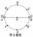8.如图所示,真空中A、B两点放置等量同种正电荷Q,O为AB连线的中点,以0点为圆心、OA为半径的圆周上等间距分布B、C、D、E、A、F、G、H八个点.下列说法中正确的是