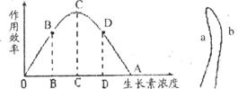 22.右图所示,如果茎a侧生长素浓度在B点以下范围内,则对b侧生长素浓度范围的描述较为准确的是(  )