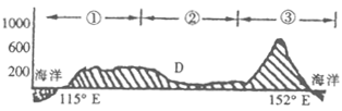 下图是某国沿纬度为30o的地形剖面图,读图回答3-5题: