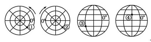 14.在下列四幅图中,经纬度位置相同的两点是 ( )