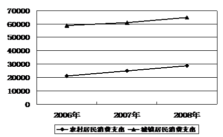 (2)①扩大农村居民消费支出,有利于统筹城乡发展,贯彻落实科学发展观,全面建设小康社会。(2分)②消费对生产具有重要的反作用。扩大农村居民消费支出,有利于扩大内需,应对金融危机的挑战,促进国民经济又好又快发展。(2分)③有利于提高农民生活水平,调动农民的生产积极性,加快社会主义新农村建设。(2分)