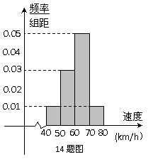 14. 400辆汽车通过某一段公路时的速度如图所示,则速度在