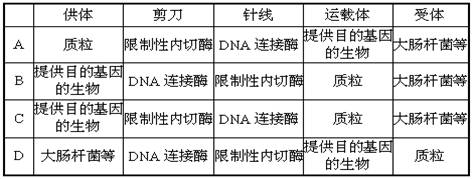 33. 下表关于基因工程中有关基因操作的名词及对应的内容,正确的组合是 ( )