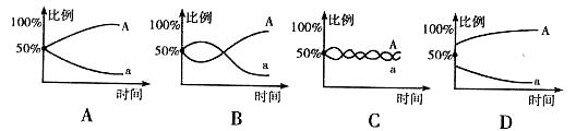 49. 某动物种群中,基因型为AA的个体占24%,Aa的个体占72%,aa的个体占4%。这三种基因型的个体在某一环境中的生存能力或竞争能力为AA=Aa>aa,则在长期的自然选择过程中,下图能正确表示A和a基因频率变化趋势的曲线是 ( )