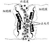 (2)根据示意图,由于水通道中间的正电荷对H+离子有 作用,所以,H+离子不能通过该水通道。