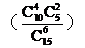 如:从10名女生与5名男生中选6名学生参加比赛,如果按性别分层随机抽样,则组成此参赛队的概率为____________。