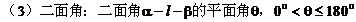 (三垂线定理法:A∈α作或证AB⊥β于B,作BO⊥棱于O,连AO,则AO⊥棱l,∴∠AOB为所求。)