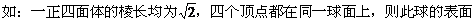 (5)球内接长方体的对角线是球的直径。正四面体的外接球半径R与内切球半径r之比为R:r=3:1。