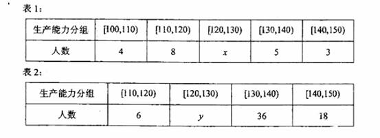 (II)从A类工人中的抽查结果和从B类工人中的抽插结果分别如下表1和表2.